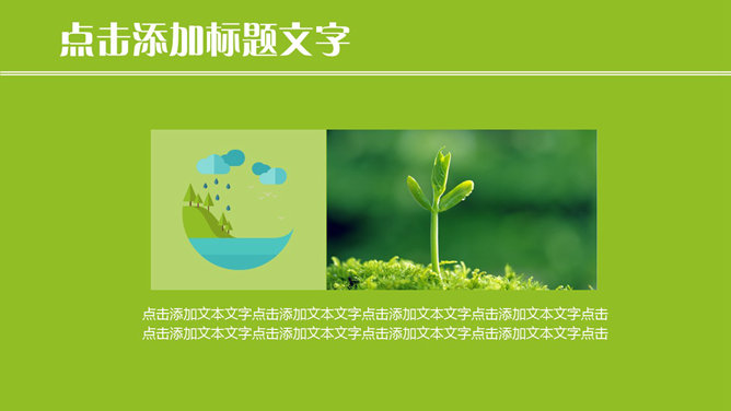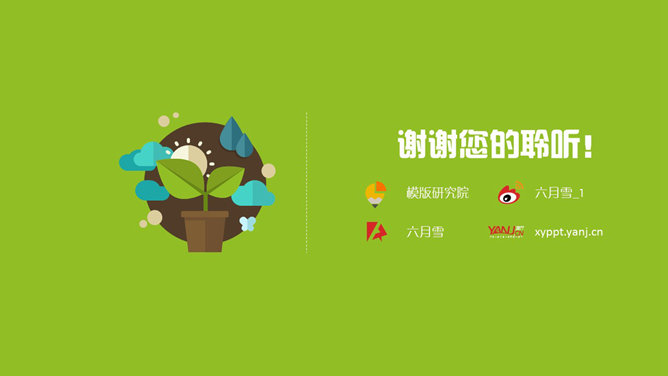 清新矢量绿色环保PPT模板。清新绿色主色调,矢量卡通盆栽元素,适合低碳节能、绿色环保、环境保护主题。