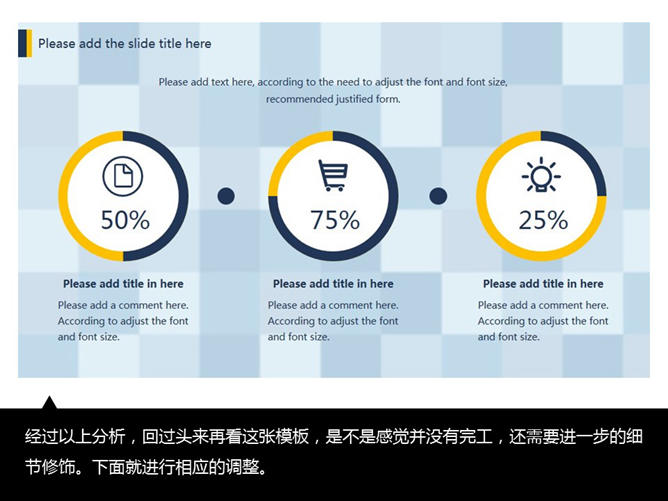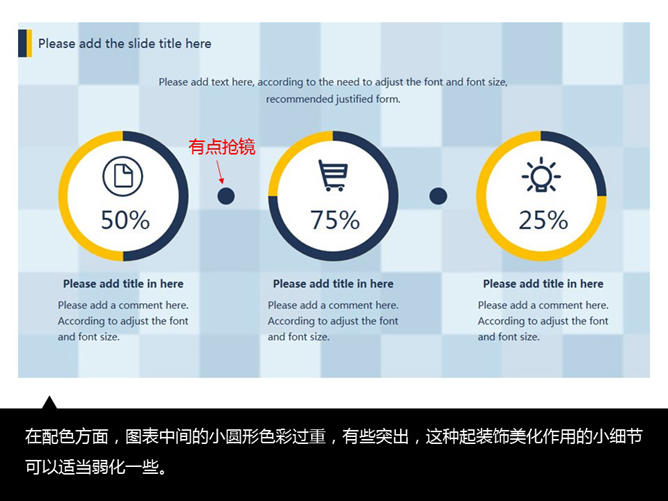 PPT设计中的细节问题处理。作者以一个例子说明了细节处理的几点问题,如背景对齐、风格统一、字号大小、颜色轻重协调等问题,值得参考。