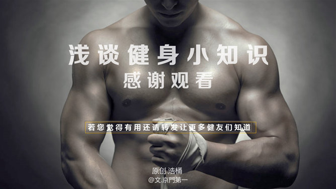 运动减肥瘦身小知识PPT作品。健身爱好者应该知道的小知识:热量消耗量要大于摄入量,脂肪的消耗量要大于蛋白质摄入量,要明确锻炼的目标,是减肥还是增肌,减肥就要做有氧运动,增肌就要做无氧运动。