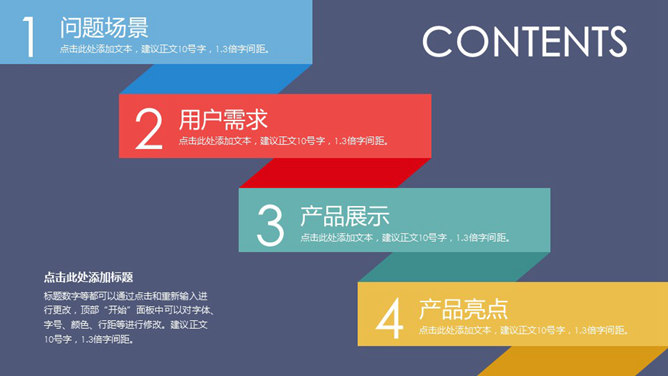 产品介绍推广宣传PPT模板。扁平化设计,大气商务风格,动态演示效果,适合产品介绍、产品推广宣传销售等用途。