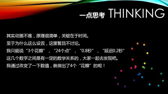 PPT制作动画旋转花瓣教程。准备工具:PowerPoint2013、Nordri Tools、一个标准24色环。开始制作:画一圈小点点。给小点点改颜色。通过以下步骤让小点点动起来。其实动画不难,原理很简单。关键在于时间。