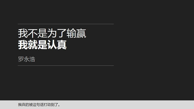 一份模仿锤子手机官方网站风格的PPT模板,素雅干净。我不是为了输赢,我就是认真。罗永浩的这句话打动了很多人。