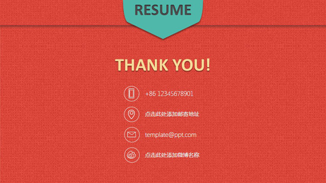 一份适合女生使用的个人简历PPT模板,暖暖的红色毛线纹理背景,微立体风格,漂亮的动态播放,简约时尚。