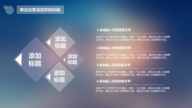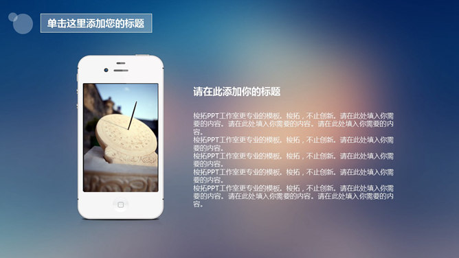 一份精美的简约的半透明IOS苹果风格PPT模板,渐变模糊光晕背景,半透明图形元素,好看的动态播放效果,用途广泛。