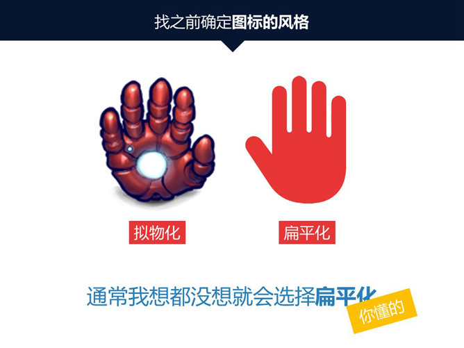 嘉文钱扁平化PPT教程图标篇下。上一期通过讲解引出图标是PPT可视化的重要方式之一。图标可以使PPT页面更有趣、更易懂、更美观,所以嘉文钱要介绍图标使用三部曲:炼、寻、处。所谓提炼,就是从文字内容提炼出一个正确图形化的点。寻就是通过关键词搜索相关图标。处就是你选择的图标进行处理。