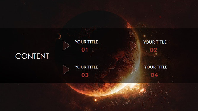 高逼格星空宇宙星球PPT模板。一份以宇宙中的星球为背景的幻灯片模板,相当炫酷,逼格满满。建议安装字体:华文细黑、Albertus Extra Bold、微软雅黑 Light。