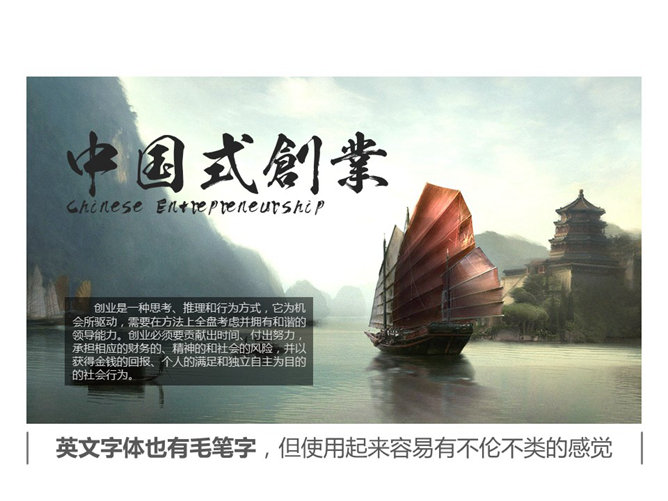 嘉文钱扁平化PPT教程字体篇下。对于PPT来说,文字内容就好比一个人赤裸的肉体,字体就好比一个人的衣服,不同的衣服会有不同的感觉。宋体、楷体、隶书等快餐式字体会毁页面,掉档次。不同的字体能让页面表现出不一样的气质。用字体表现正确感觉和气质是一种能力。