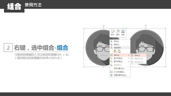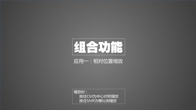 PPT组合功能使用心得。一份比较实用的教程。组合功能应用一:相对位置缩放。组合功能应用二:快速确定N等分线。以及组合功能应用注意事项。