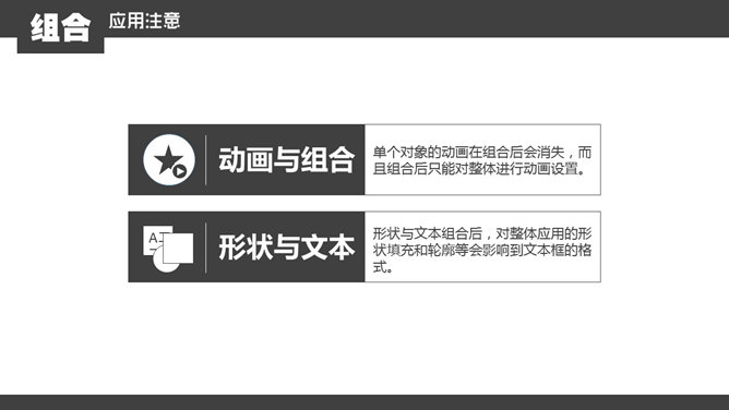 PPT组合功能使用心得。一份比较实用的教程。组合功能应用一:相对位置缩放。组合功能应用二:快速确定N等分线。以及组合功能应用注意事项。