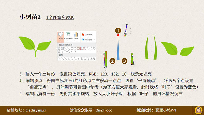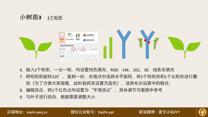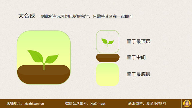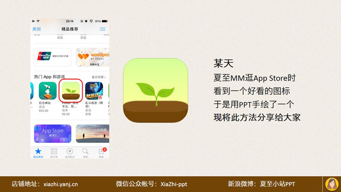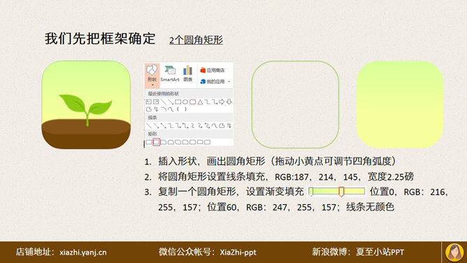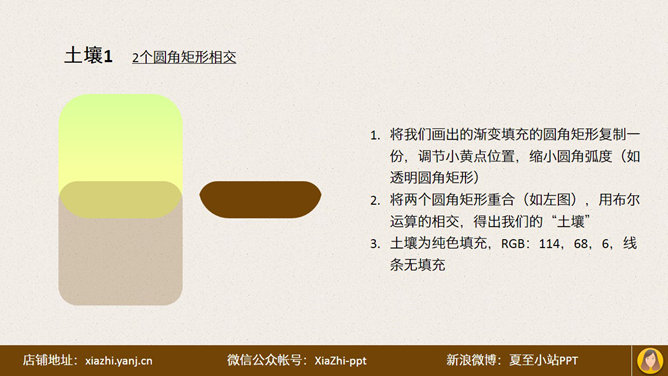 PPT手绘幼苗小图标教程。夏至MM逛App Store时,看到一个好看的图标,于是用PPT手绘了一个,现将此方法分享给大家:先确定框架,两个圆角矩形,然后画土壤整体,由两个圆角矩形相交形成。土壤上半部分,一个矩形和两个椭圆。再画小幼苗……