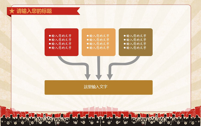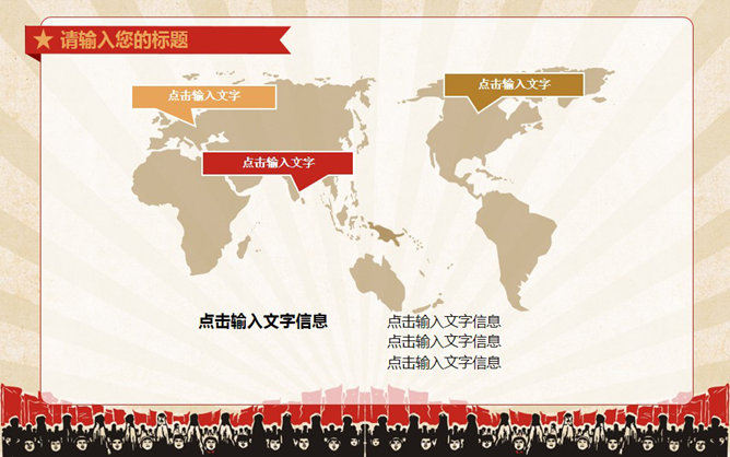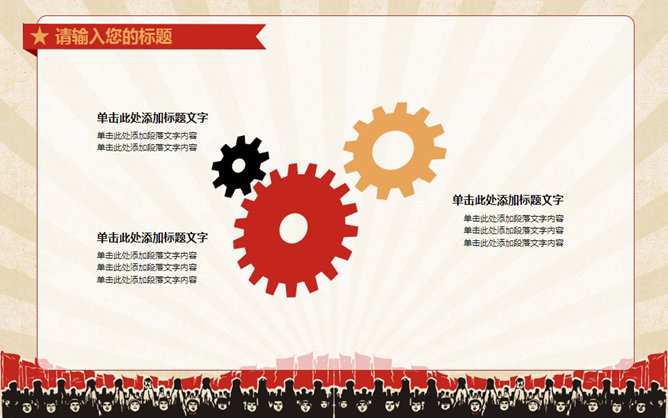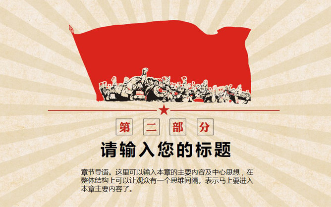 创意激情激励复古风PPT模板。一份很有创意的动态幻灯片模板,复古风设计风格,表现了努力奋斗的积极意义,共37页,图形图表页非常丰富,选择面广,动态演示效果,适合团队激励、团队建设等用途。所用字体:华康俪金黑W8(P)。