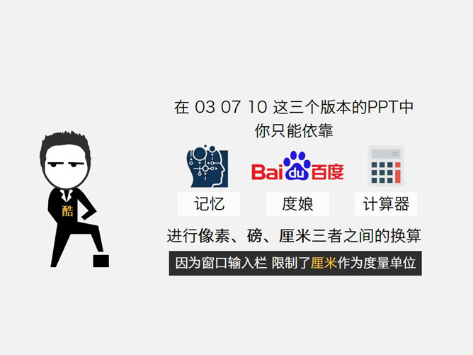 幻灯片大小尺寸设置技巧。酷P了系列PPT教程第二季。厘米、磅、像素、英寸等单位的转换特别麻烦。可是要做一个特定尺寸大小的PPT怎么办,其实只要在页面设置-幻灯片大小直接输入你想要的尺寸就会自动转换了。