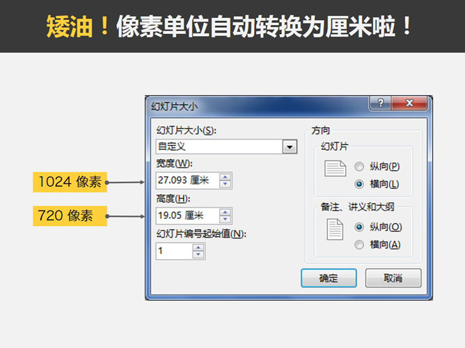 幻灯片大小尺寸设置技巧。酷P了系列PPT教程第二季。厘米、磅、像素、英寸等单位的转换特别麻烦。可是要做一个特定尺寸大小的PPT怎么办,其实只要在页面设置-幻灯片大小直接输入你想要的尺寸就会自动转换了。