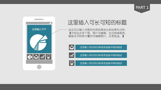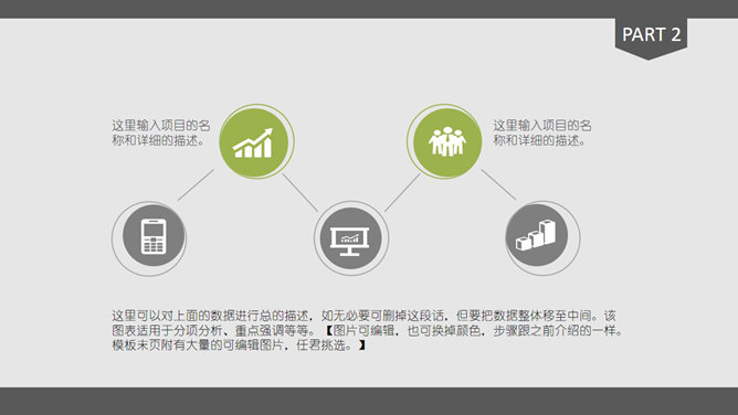 稳重大方述职报告PPT模板。素雅配色,扁平化设计风格。建议安装字体: