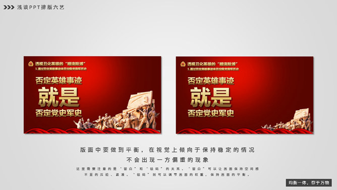 浅谈PPT排版六艺。六艺为:整齐、统一、均衡、层次、场景、焦点。“肥宅V”作品。