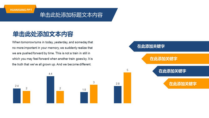 简洁大方商务咨询PPT模板。一份简约大气的商务风格幻灯片模板,白色背景,蓝橙配色,适合咨询公司或团队建设等。