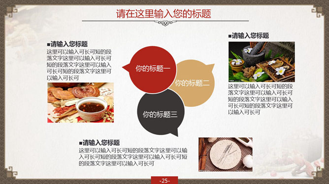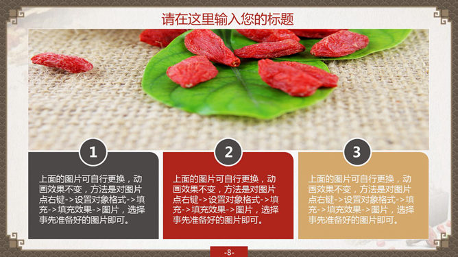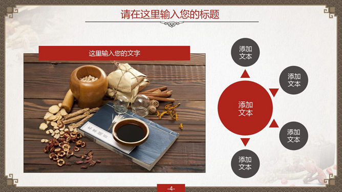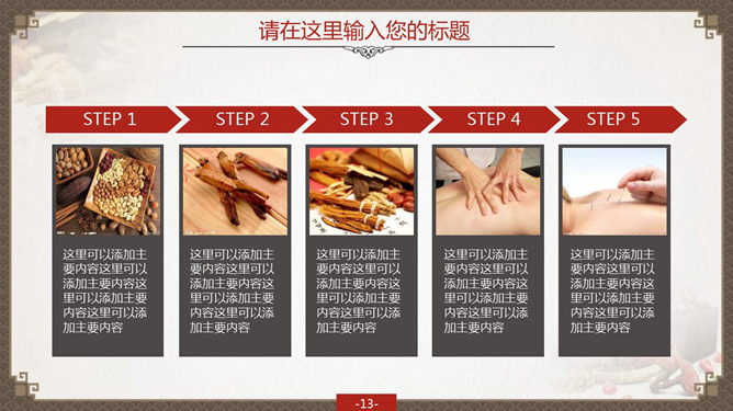 精品中国风中医中药PPT模板。一份设计精美的中医中药通用幻灯片模板,古典中国风背景及中药图片装饰,共37页,页面丰富实用,适合中药中医知识讲解或中药药品销售汇报使用。建议安装字体:方正字迹-吕建德字体、方正隶变简体、方正隶二简体、华康俪金黑W8(P)、楷体_GB2312。