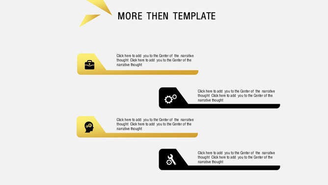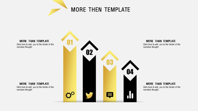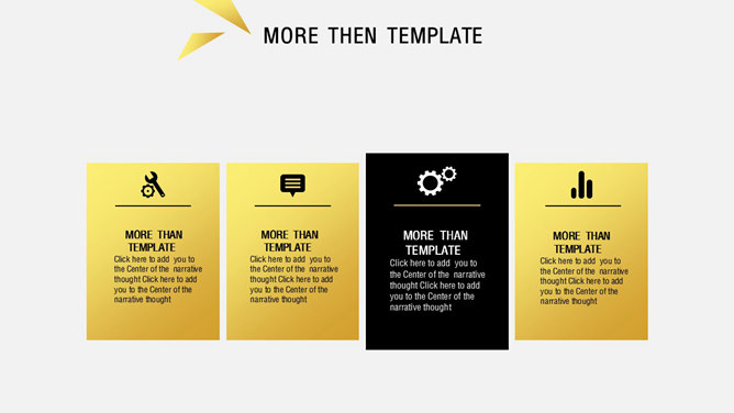 炫酷时尚黑金欧美风PPT模板。一份精美高逼格通用幻灯片模板,炫酷黑色金色配色,排版布局简约时尚,共26页,页面类型齐全丰富。建议安装字体: