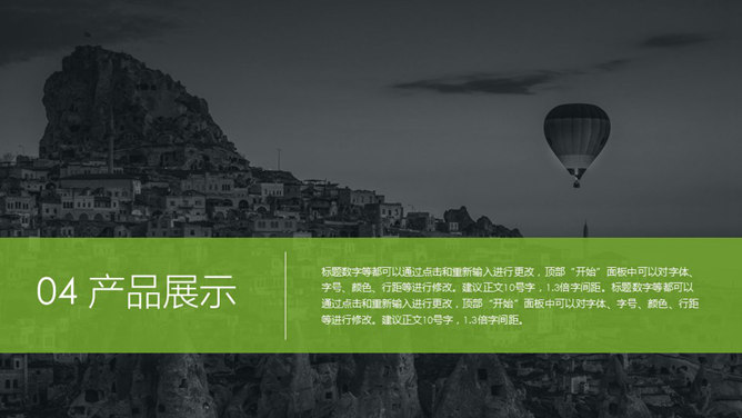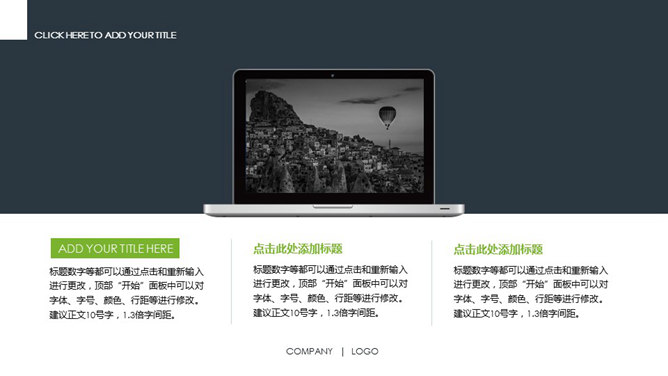 一份公司产品服务介绍通用PPT模板,绿色主色调,简约大方,动态演示效果。更多同类模板: