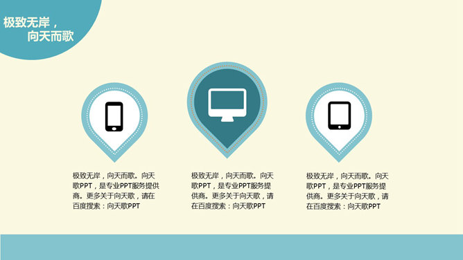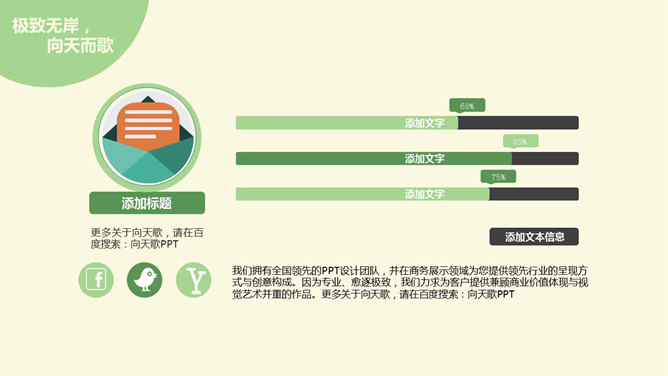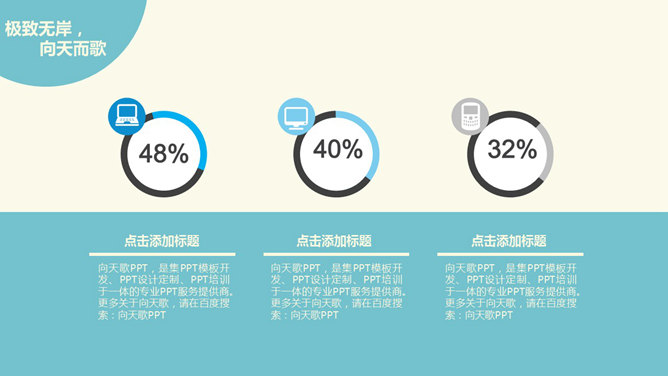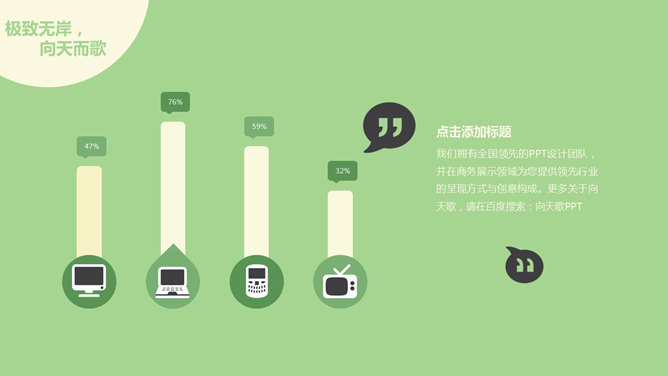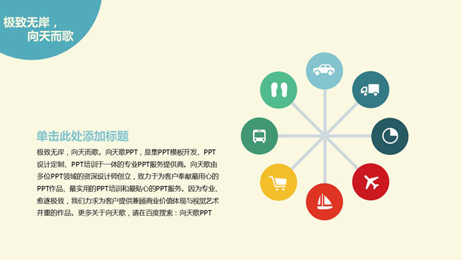 小清新矢量扁平化PPT模板。一份创意卡通扁平化通用幻灯片模板,柔和小清新色彩配色,扁平化设计风格,能胜任多种场合和用途。