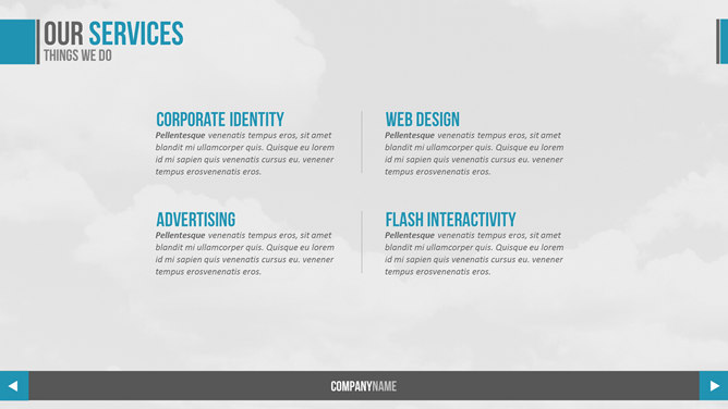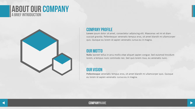 简洁大方动态商务PPT模板。一份商务风格幻灯片模板,灰色背景,清爽蓝色色调,简约大气,使用字体: