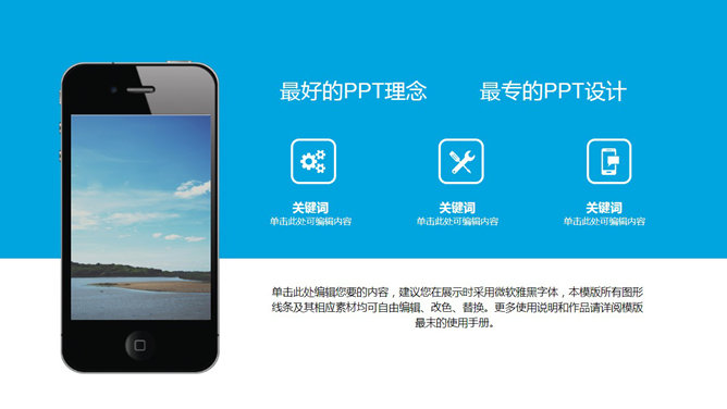 清爽蓝色总结汇报PPT模板。一份适合用于工作总结汇报报告的幻灯片模板,清爽明快的天蓝色主色调,风格简约。