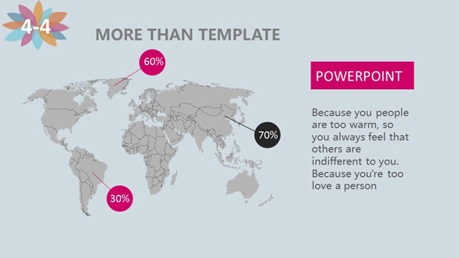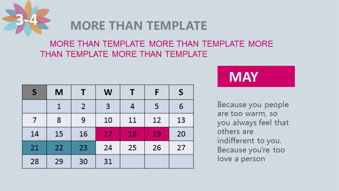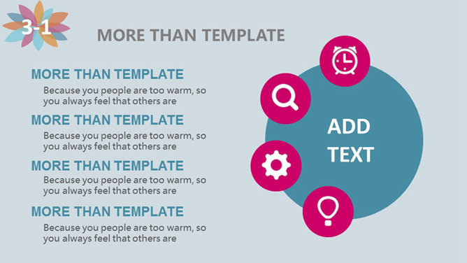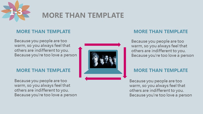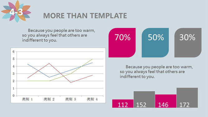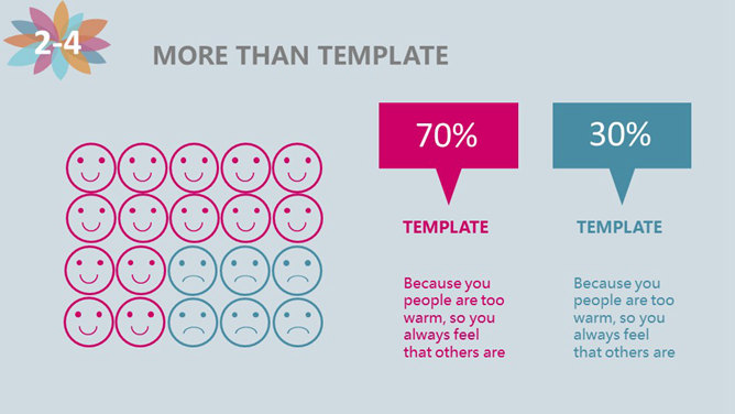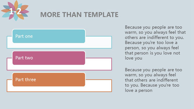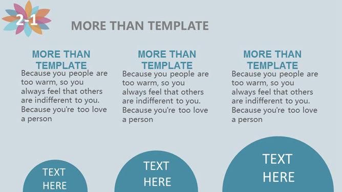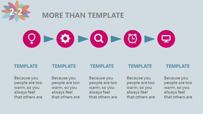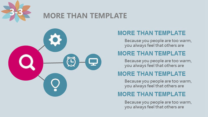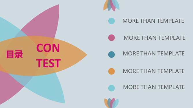 淡雅多色多功能通用PPT模板。抽象艺术设计花朵主元素,页面丰富齐全,用途广泛,能胜任多种场合。