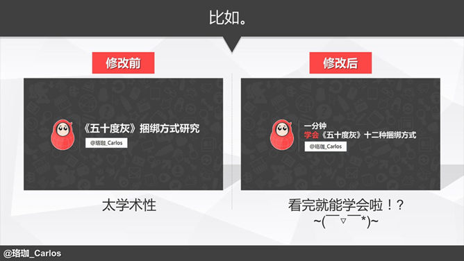 PPT速效装逼指南-封面篇。一份超强大实用精美有趣的PPT教程,讲解如何制作高逼格PPT封面。BY大神@珞珈_Carlos。