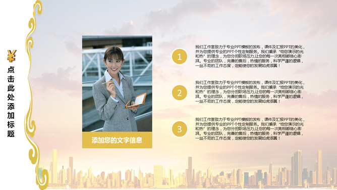 手捧人民币符号金融PPT模板。一套经济金融行业幻灯片模板,手捧人民币符号概念图片背景,适合投资、理财等主题。