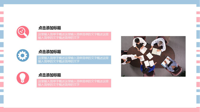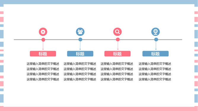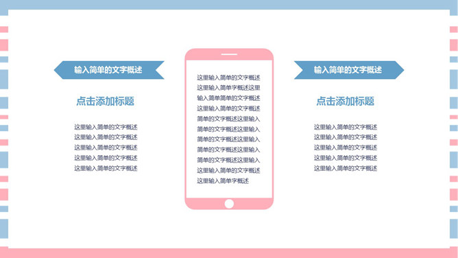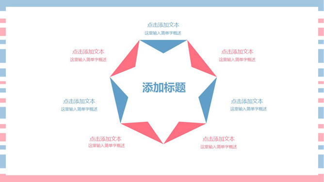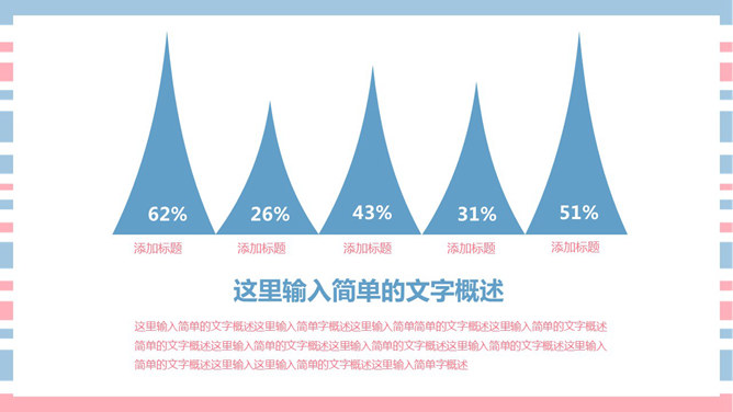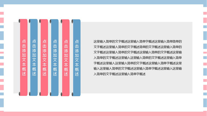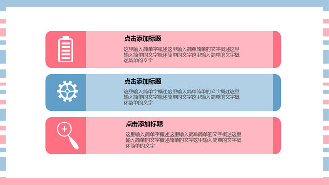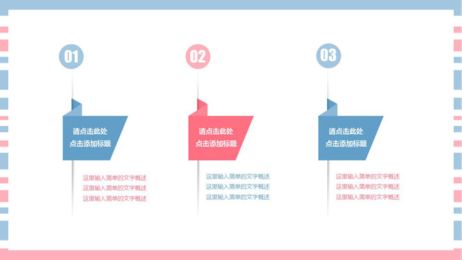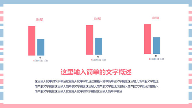 清新彩条通用PPT模板下载。清新粉蓝配色,共27页,图形图表页面丰富,适合女生使用。