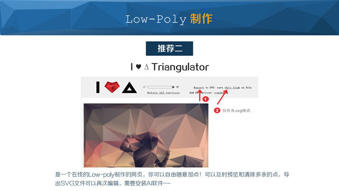 三角形杂志风PPT设计技巧。1、认识三角形。三角形可以层叠,只要调节透明度即可,可以“弄出” 正方形 or 长方形,可以堆叠成各种方形,多边形!甚至是各种图形!2、三角形如何排版。靠边、悬浮、称线。3、提升技巧。多学多看找灵感。4、拓展高级玩法Low-poly。