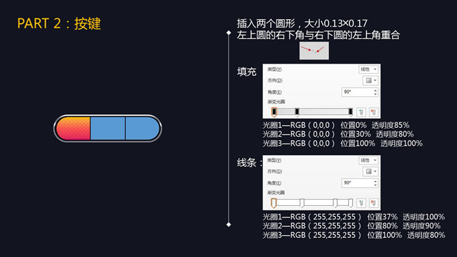 PPT绘制发光效果按钮教程作者以一个好看的水晶发光效果按钮为立体,用PowerPoint一步步手绘和例子一模的效果。
