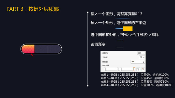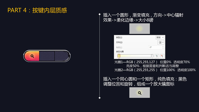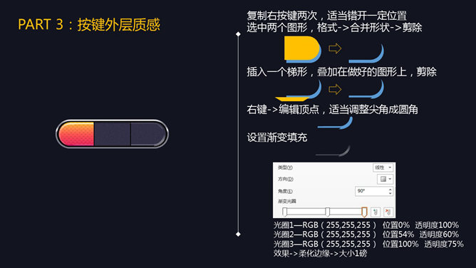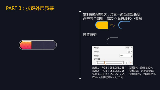 PPT绘制发光效果按钮教程作者以一个好看的水晶发光效果按钮为立体,用PowerPoint一步步手绘和例子一模的效果。