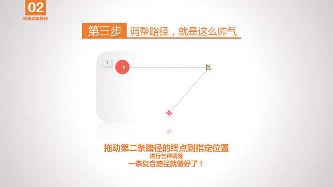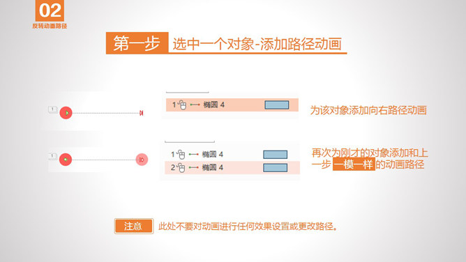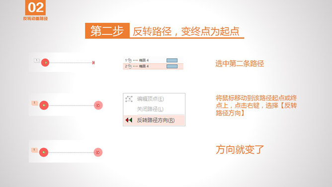 反转路径方向把终点变起点。第一步:选中一个对象-添加路径动画。第二步:反转路径,变终点为起点。第三步:调整路径,就是这么简单。