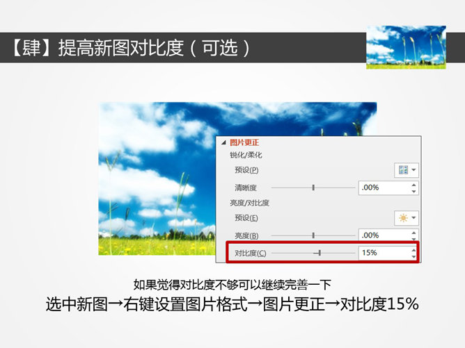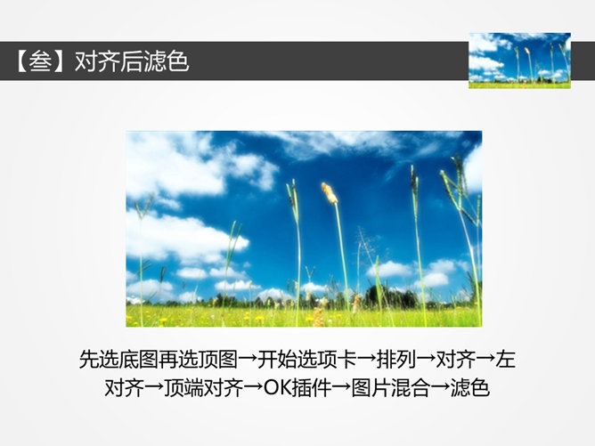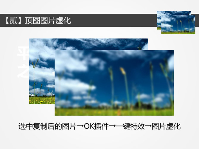 PPT图片虚化和滤色效果处理。1、插入一张图片,并复制一次。2、选中复制后的图片→OK插件→一键特效→图片虚化。3、先选底图再选顶图→开始选项卡→排列→对齐→左对齐→顶端对齐→OK插件→图片混合→滤色。4、选中新图→右键设置图片格式→图片更正→对比度15%。