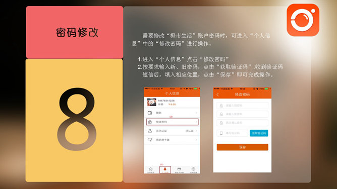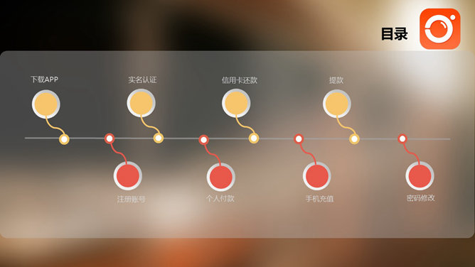 IOS风格APP使用说明PPT模板。一份时尚好看的APP系统使用说明幻灯片模板,采用虚化毛玻璃背景,IOS苹果风设计。