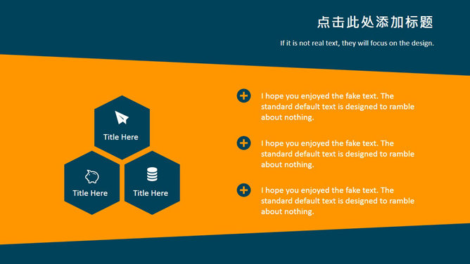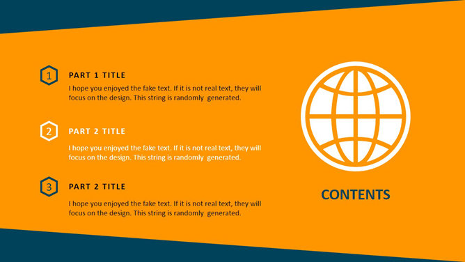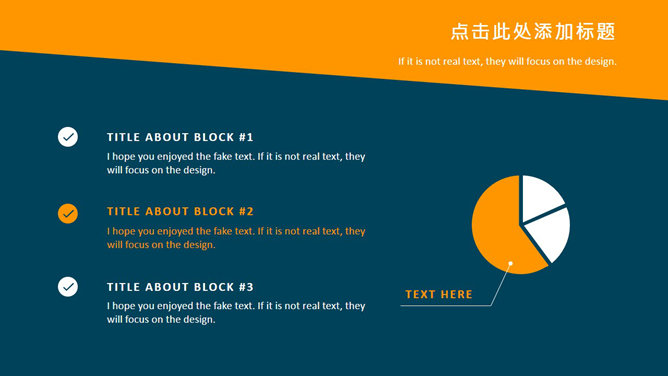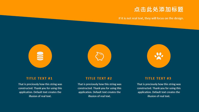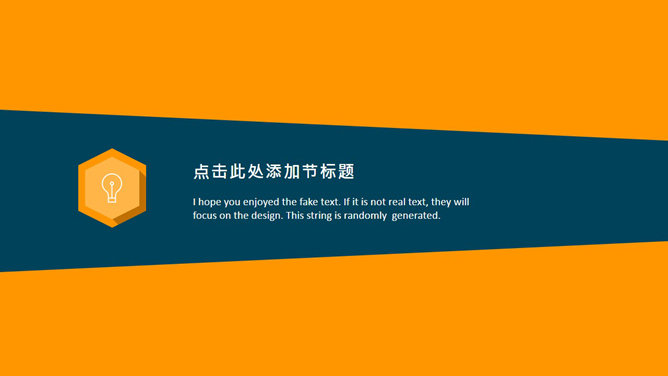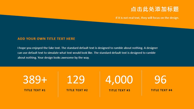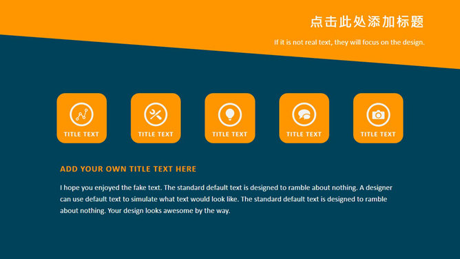 简约蓝橙配色商务通用PPT模板。一份简洁大方商务通用幻灯片模板,经典蓝色橙色配色,色块分割版式布局。
