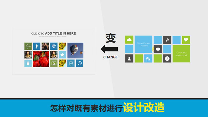 怎样打造扁平化商务PPT图表。扁平商务风格的图表有什么样的特点?无渐变、无阴影、清爽大气。介绍了怎样对仅有素材的设计改造,怎样完成从素材到图表的转化。