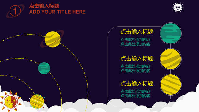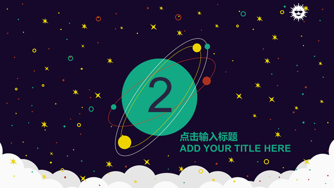 太空宇宙星球天文知识PPT模板。一套卡通风格模板,宇宙深色背景,星球、火箭等元素,适合小学天文知识教学课件。