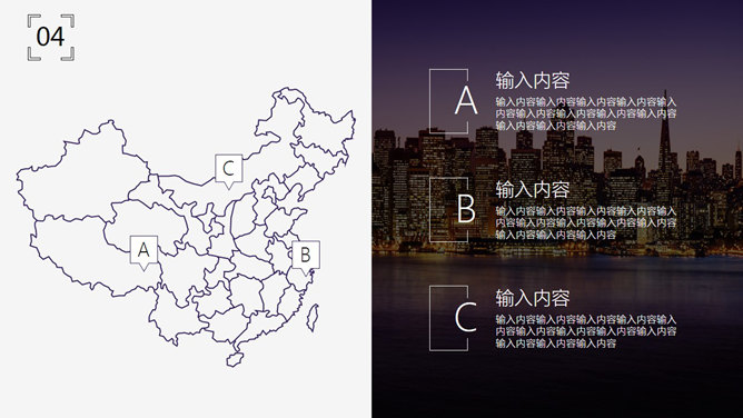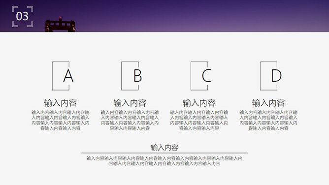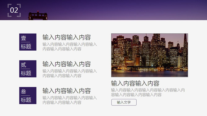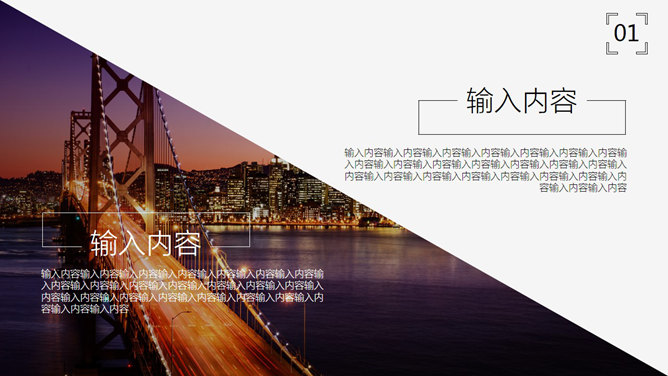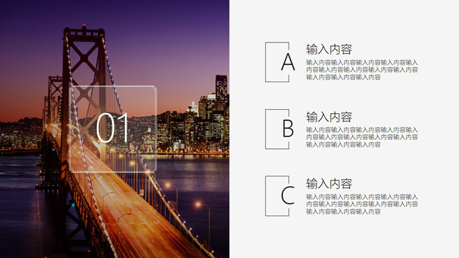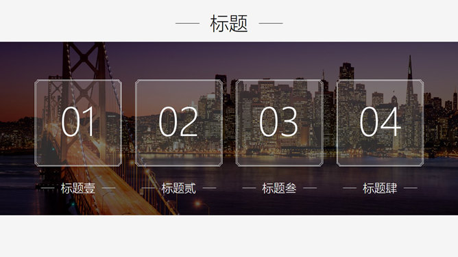 繁华城市夜景优雅商务PPT模板。一份优雅大方的商务风格幻灯片模板,以城市夜景为背景,内页排版简约时尚。