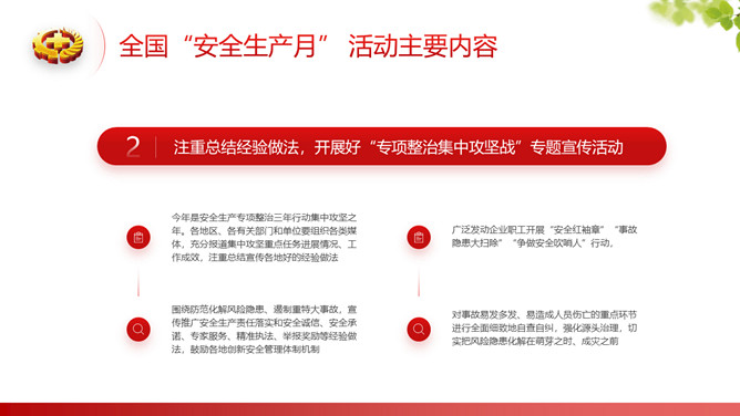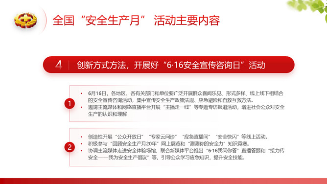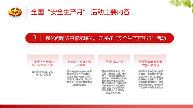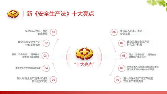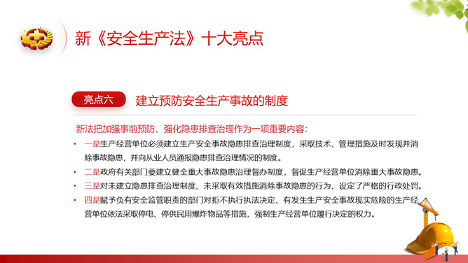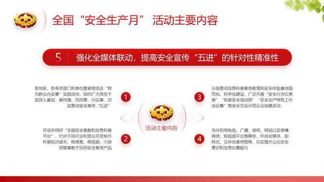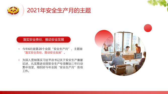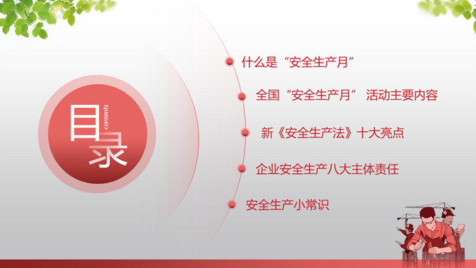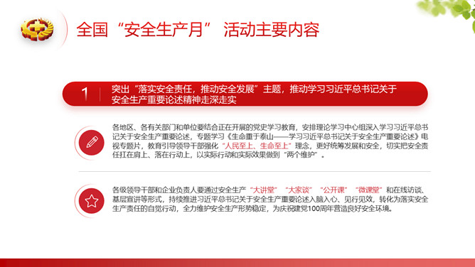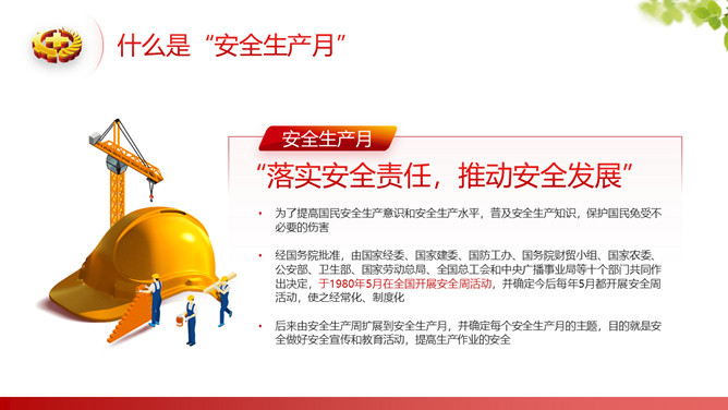 安全生产月安全管理PPT课件模板。内容包括什么是安全生产月、全国“安全生产月” 活动主要内容、新《安全生产法》十大亮点、企业安全生产八大主体责任、安全生产小常识。