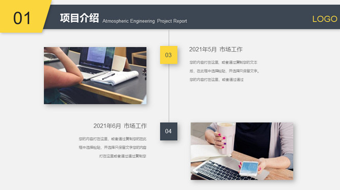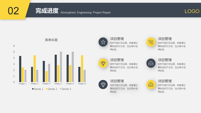 大气实用项目总结汇报PPT模板。一份精美的项目总结汇报报告幻灯片模板,高端大气设计,质感精致微立体风格。