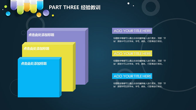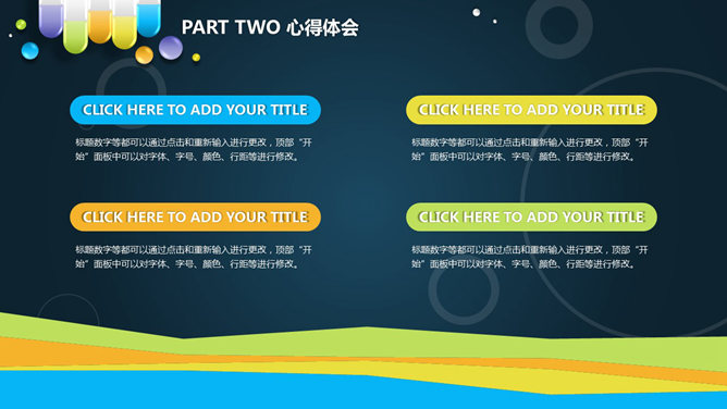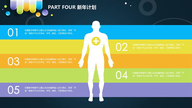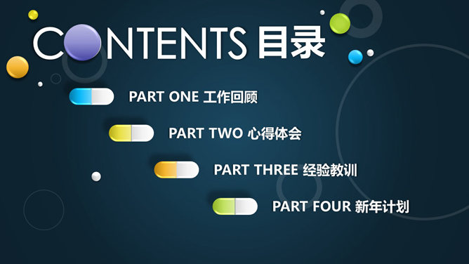 医药药品销售工作总结PPT模板。一份以药片、胶囊等药品形状的图形设计的幻灯片模板,配色鲜艳,适合医药研制、生产、销售等相关行业使用。