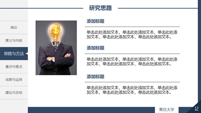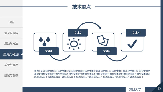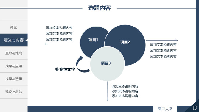 蓝色侧边导航论文答辩PPT模板。一套毕业论文答辩、课题开题报告模板,蓝色主色调,实用侧边栏导航设计。