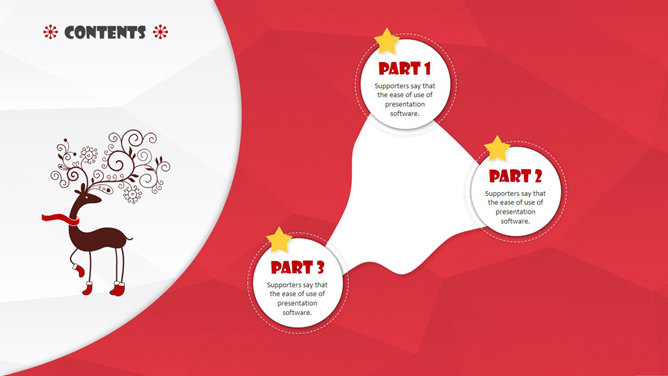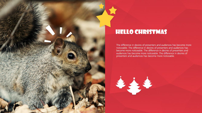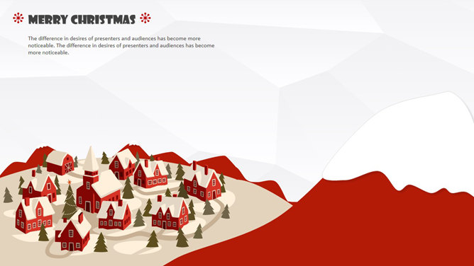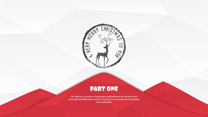 时尚好看的圣诞节主题PPT模板。一份精品圣诞节主题幻灯片模板低多边形背景,喜庆红色主色调,扁平化设计风格。建议安装字体: