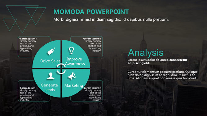 时尚多用途幻灯片模板下载。一份多功能多用途幻灯片模板,酷黑背景,排版布局简洁时尚,图形图表页面丰富。