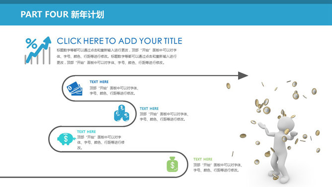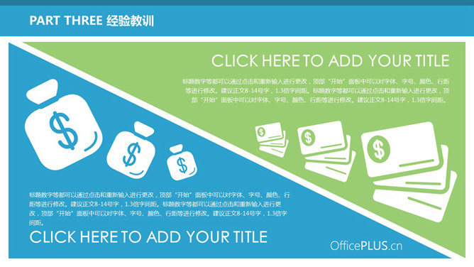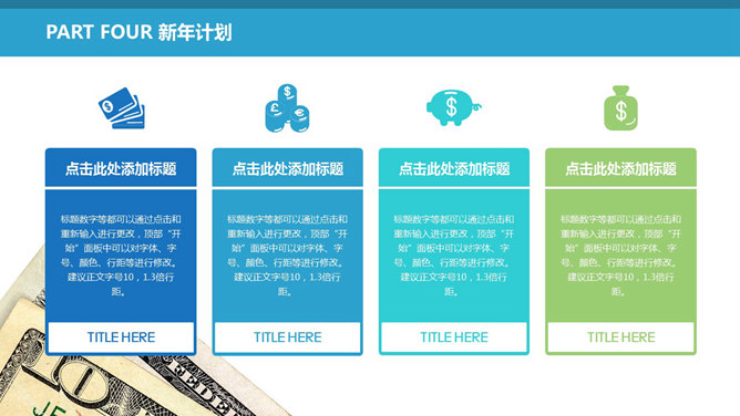 财务财会工作总结汇报PPT模板。一份适合财务工作人员工作汇报总结使用的幻灯片模板,扁平化设计风格,动态切换,使用金币、货币符号、美元等金融货币相关的元素设计。