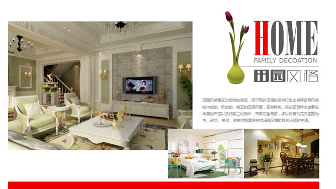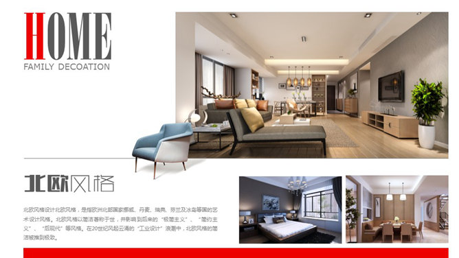 室内设计装修公司介绍PPT模板。一份精美实用的室内设计装修公司介绍幻灯片模板,包括公司简介、设计案例、施工案例几部分,大气红色配色,炫酷动态播放效果,时尚图文排版,另附带背景音乐。所用字体较多:方正兰亭中黑_GBK、方正兰亭细黑_GBK、方正粗谭黑简体、方正细谭黑简体、Bodoni MT Poster Compressed,请另行下载安装。