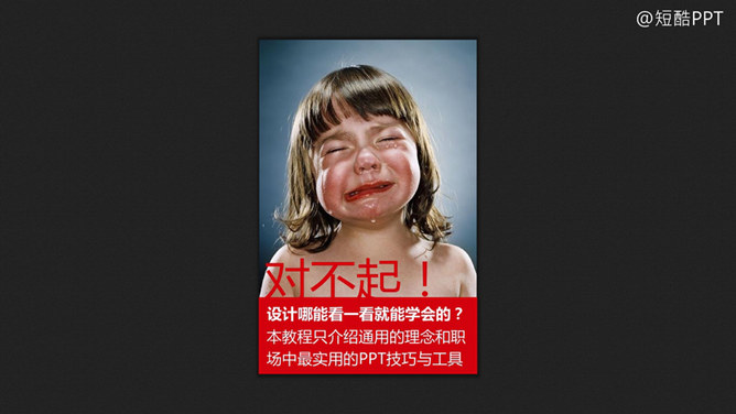 真是酷P了 短酷PPT教程。在教程开始之前咱们先聊一个严肃的话题:为啥要学好PPT?因为经过27年的进化,PPT的功能越来越强大,已经被广泛应用到课堂教学、述职竞聘、年终总结、产品发布、公司宣传等。2010及以后的版本能导出视频,让PPT的传播能力发挥的淋漓尽致。2013版本则引入了插件的概念,让PPT的功能扩展更加便捷。而且根据《职场晋升第一定律》,工作中要加薪,您就得:会拍马屁、会装逼、还要会PPT……