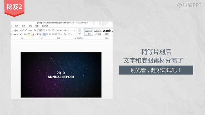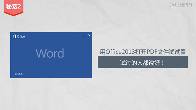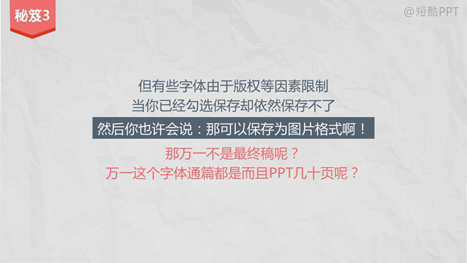 真是酷P了 短酷PPT教程。在教程开始之前咱们先聊一个严肃的话题:为啥要学好PPT?因为经过27年的进化,PPT的功能越来越强大,已经被广泛应用到课堂教学、述职竞聘、年终总结、产品发布、公司宣传等。2010及以后的版本能导出视频,让PPT的传播能力发挥的淋漓尽致。2013版本则引入了插件的概念,让PPT的功能扩展更加便捷。而且根据《职场晋升第一定律》,工作中要加薪,您就得:会拍马屁、会装逼、还要会PPT……